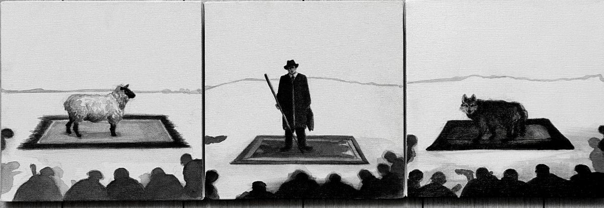 Ink on canvas, 25 x 66 cm. (Triptych) 20 x 20 cm. (her biri /each one)