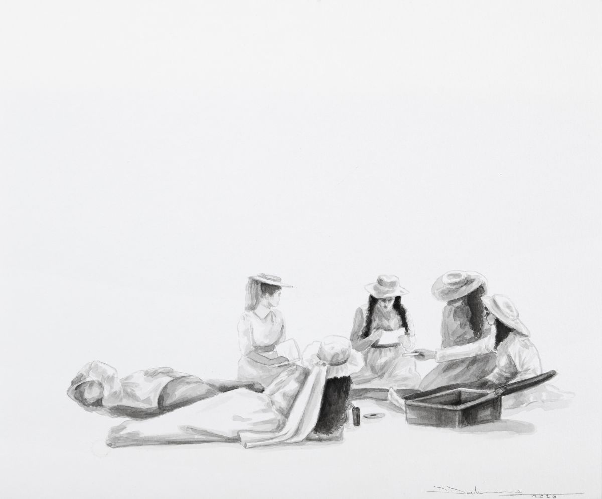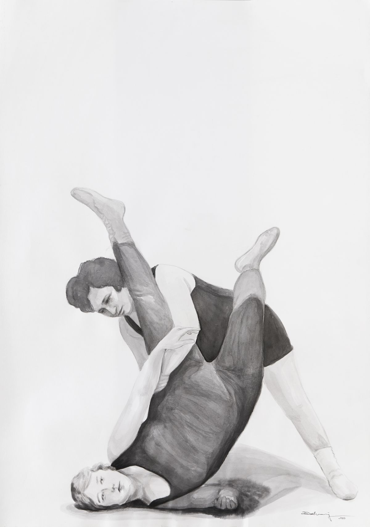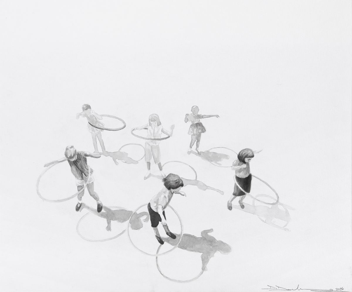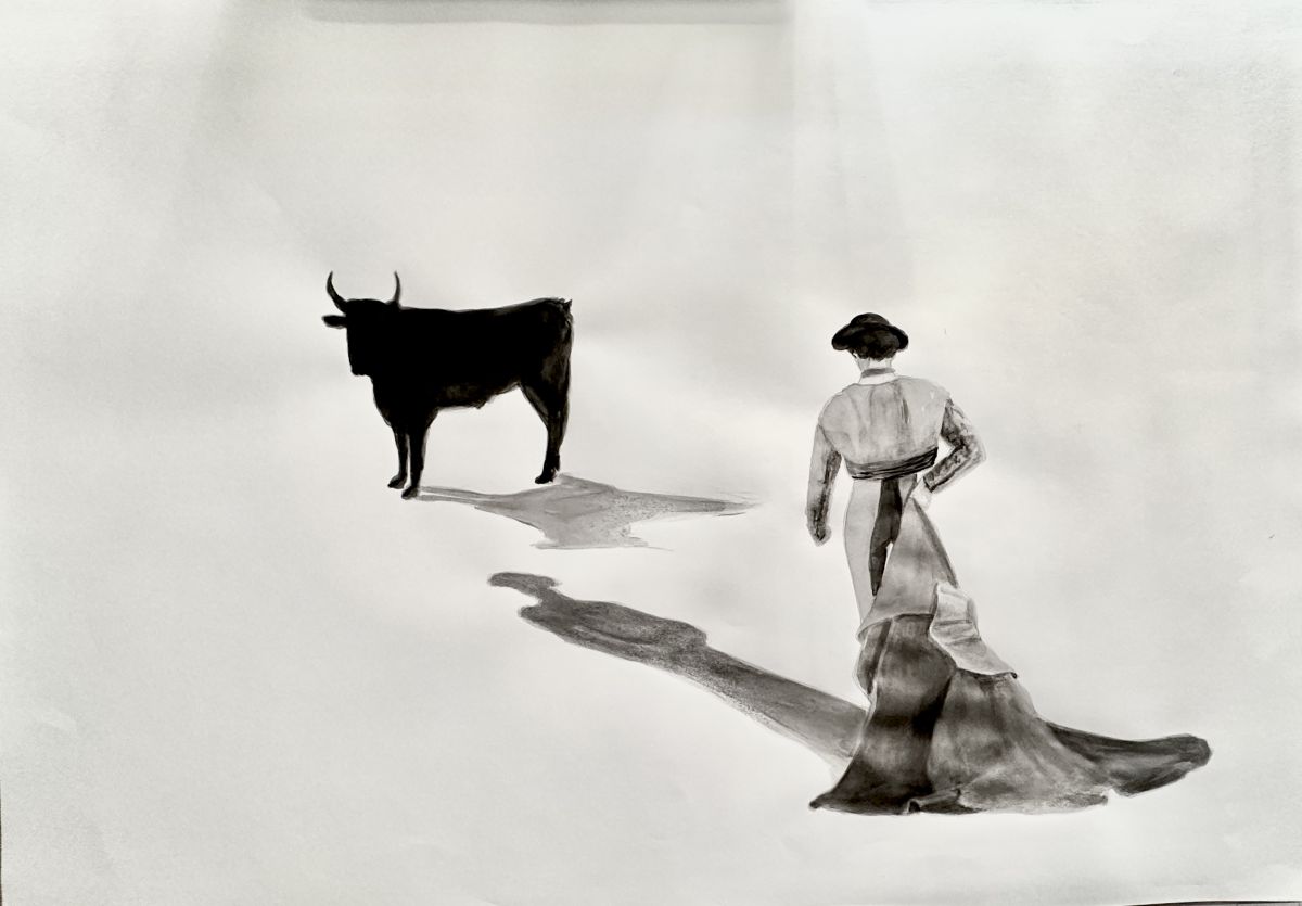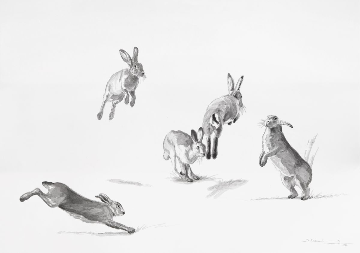 I argue that humanity adapts to nature through culture, learning all complex social rules and values through a "playful discipline." The ink stains I leave on paper represent the uncontrollable power and raw energy of nature. However, the figures I pull out of these stains—bodies colliding with gravity, rearing horses, or silently waiting communities—symbolize the constructive and taming power of play.