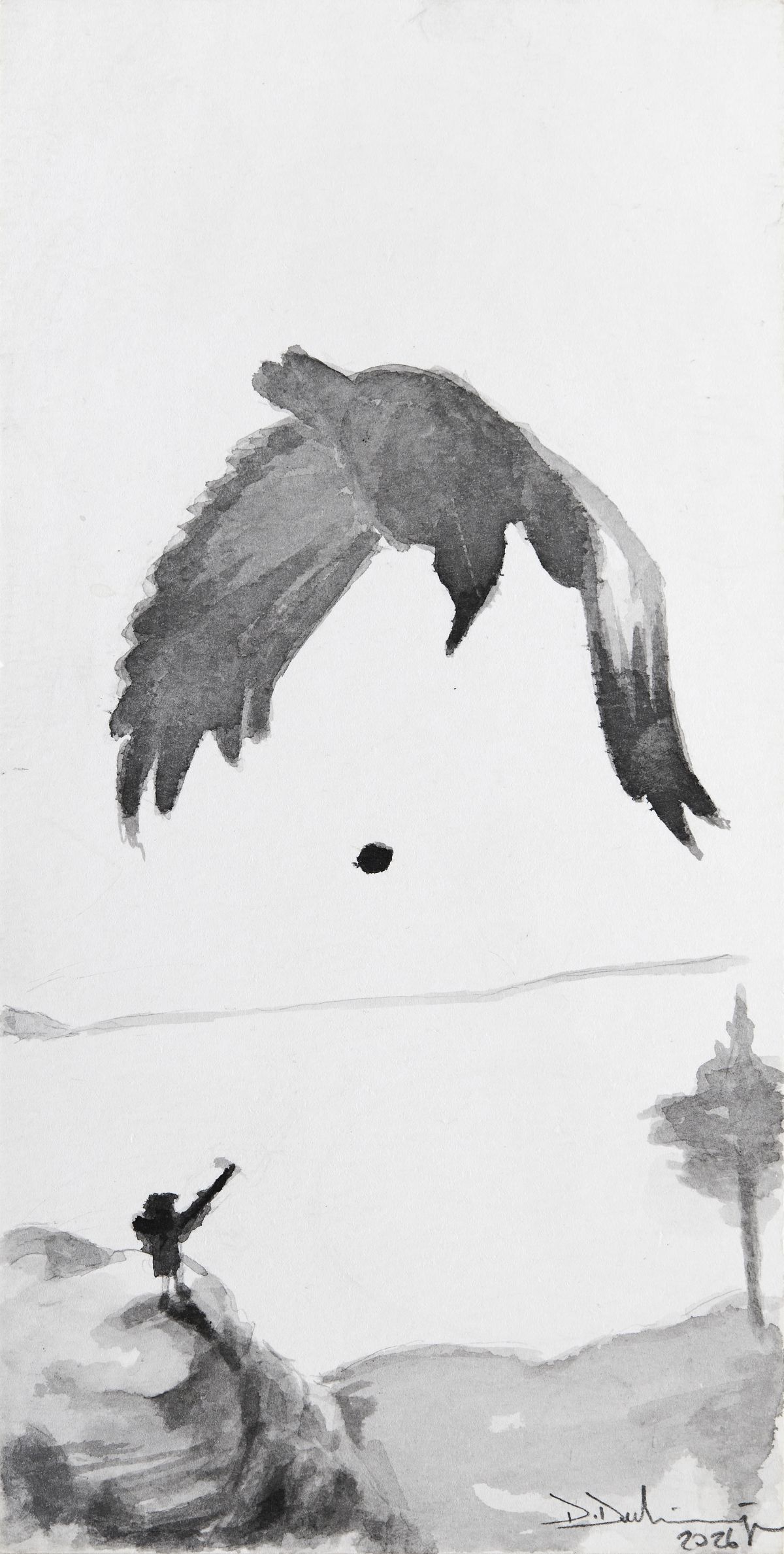 In my work, I seek man’s endeavor to carve out a place for himself within the chaotic and gargantuan cycles of nature through the unpredictable flow of ink on paper. To me, our bond with nature is not merely a biological struggle for survival; it is a journey of making sense of its harsh reality and building the collective memory we call "culture" by translating it into symbols. As Huizinga emphasizes, I believe that play is the purest form of this ancient bridge.
