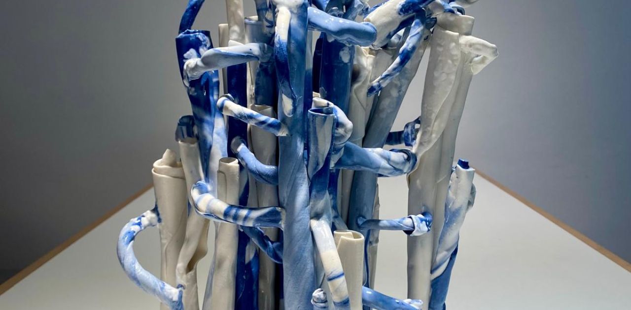 Renklendirilmiş porselen 1230 derece,elle şekillendirme ve plaka tekniği, h:45cm*50cm